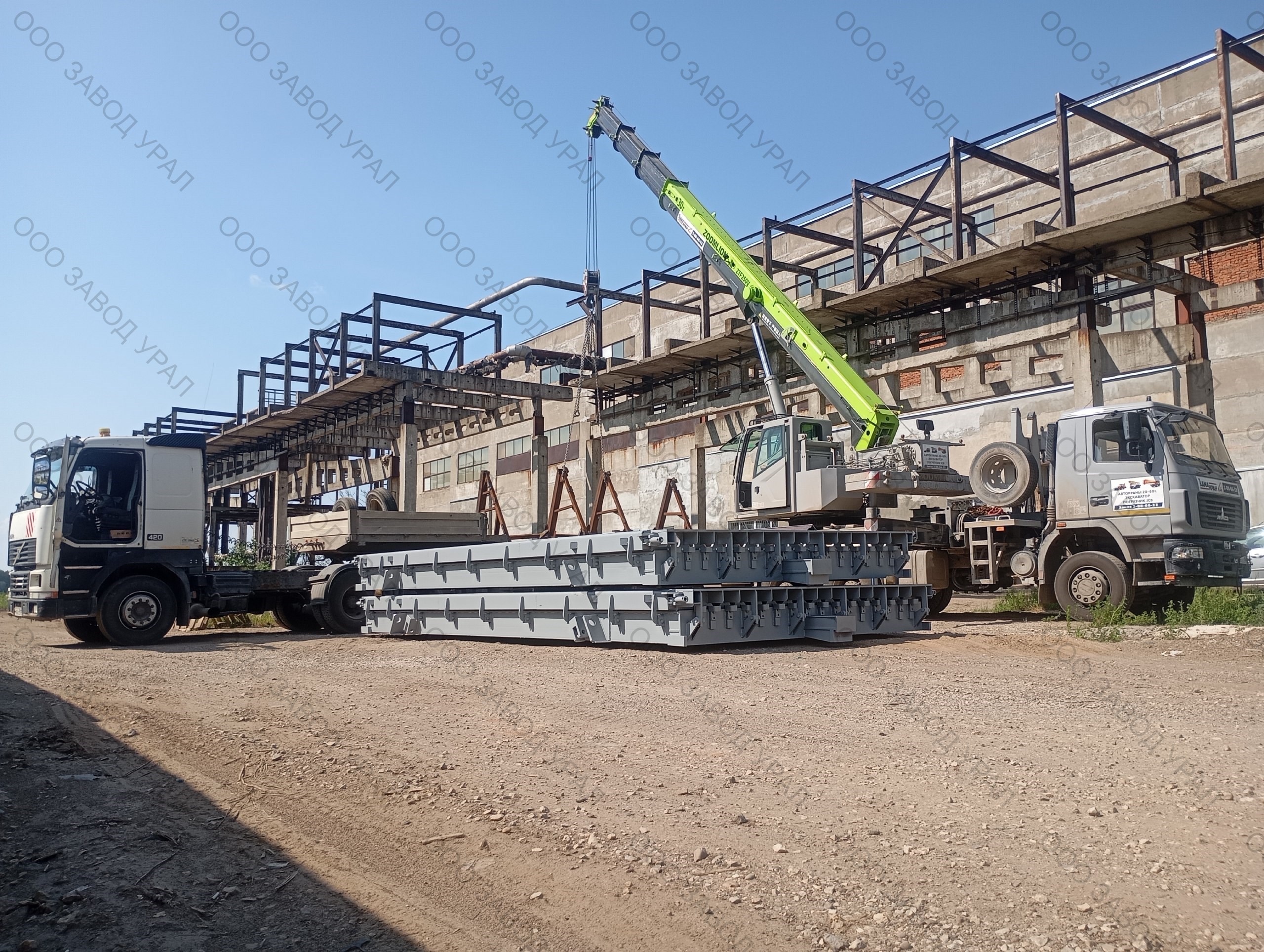 Металлоформы для производства плит перекрытия изготовлены по проекту заказчика. Ввиду того, что форма спроектирована сразу на два изделия, её ширина превысила допустимые габариты по выгрузке. Была спроектирована рама для вывоза формы под наклоном с последующим размещением на трале с помощью крана большой грузоподъемности.
